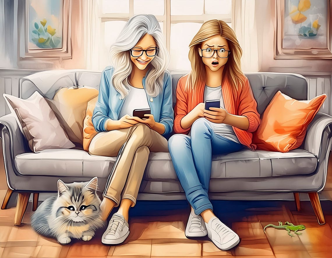 Bec and her mom have a text discussion when young adult Bec lived at home.